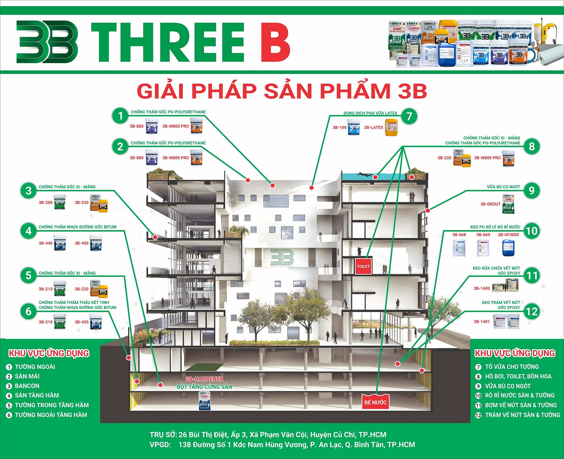 Chống thấm 3B với đa dạng sản phẩm phù hợp với từng hạng mục chống thấm, tự hạng múc trong nhà, ngoài trời, tầng hầm hay bể chứa, chúng tôi đều đáp ứng được nhu cầu chống thấm của công trình.