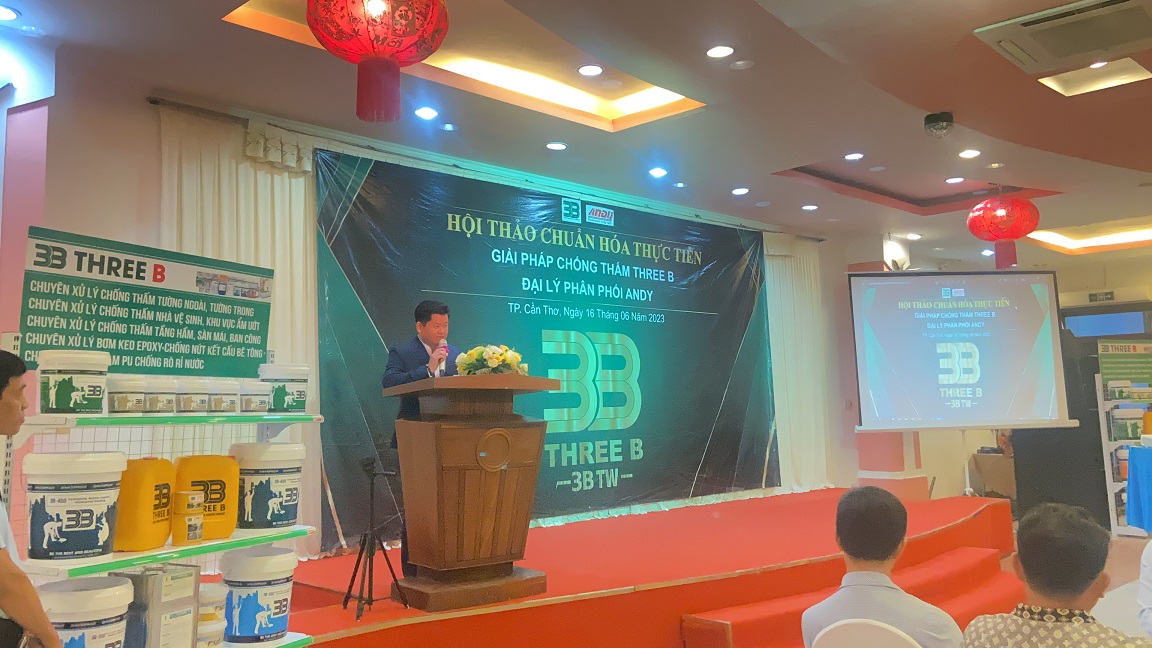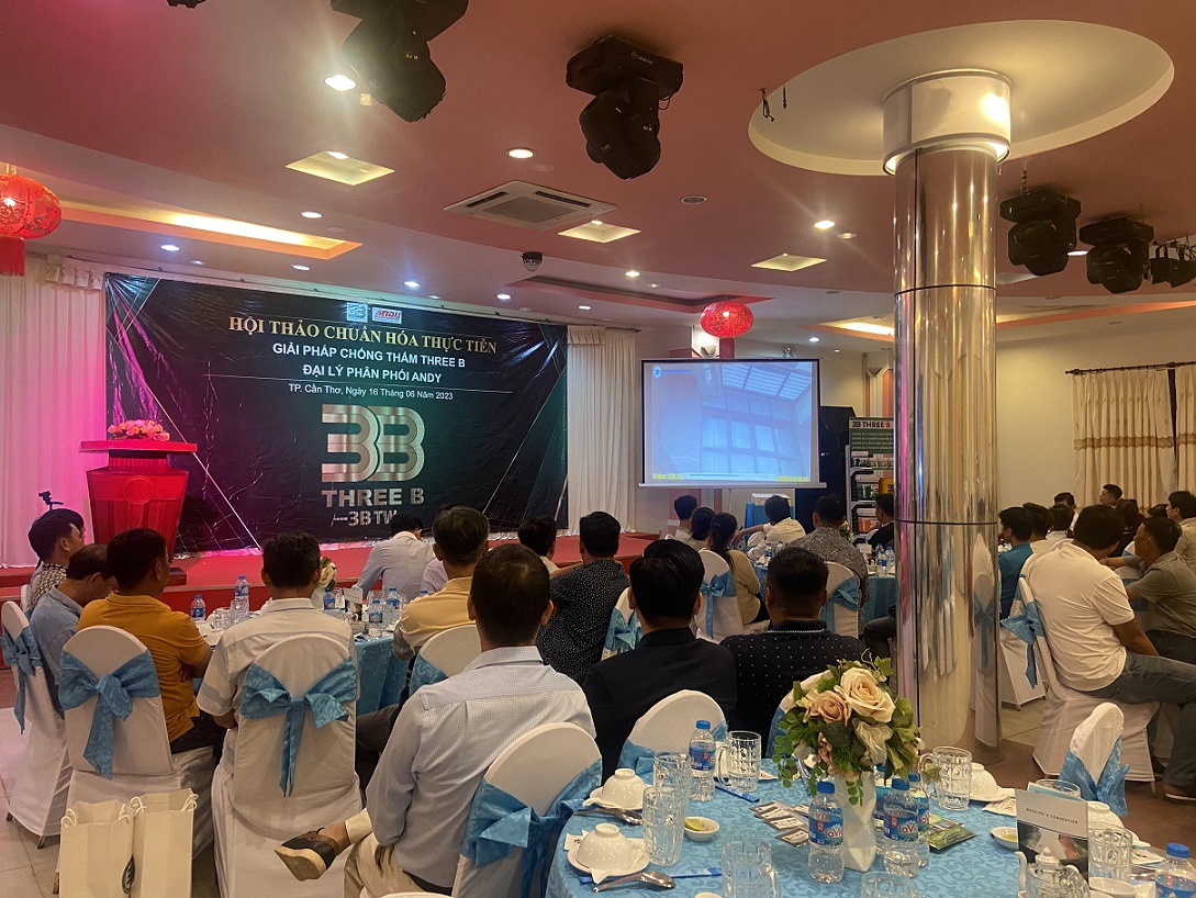 Ngày 16/06/2023, "HỘI THẢO CHUẨN HÓA THỰC TIỄN - GIẢI PHÁP CHỐNG THẤM THREE B" LẦN II đã diễn ra thành công ngoài mong đợi khi được đồng hành cùng Công ty TNHH VLXD Andy - NPP chính hãng sản phẩm 3B và sự góp mặt của đông đảo khách mời tại Thành Phố Cần Thơ.