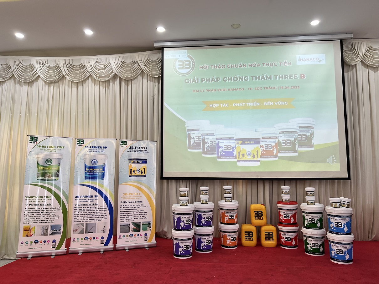 "HỘI THẢO CHUẨN HÓA THỰC TIỄN - GIẢI PHÁP CHỐNG THẤM THREE B" LẦN I do Công ty Three B đồng hành cùng Công ty TNHH Sơn & Dịch Vụ Xây Dựng Hanaco - NPP 3B tại khu vực Miền Tây đã thu hút đông đảo khách mời tham gia tại khu vực Thành phố Sóc Trăng.